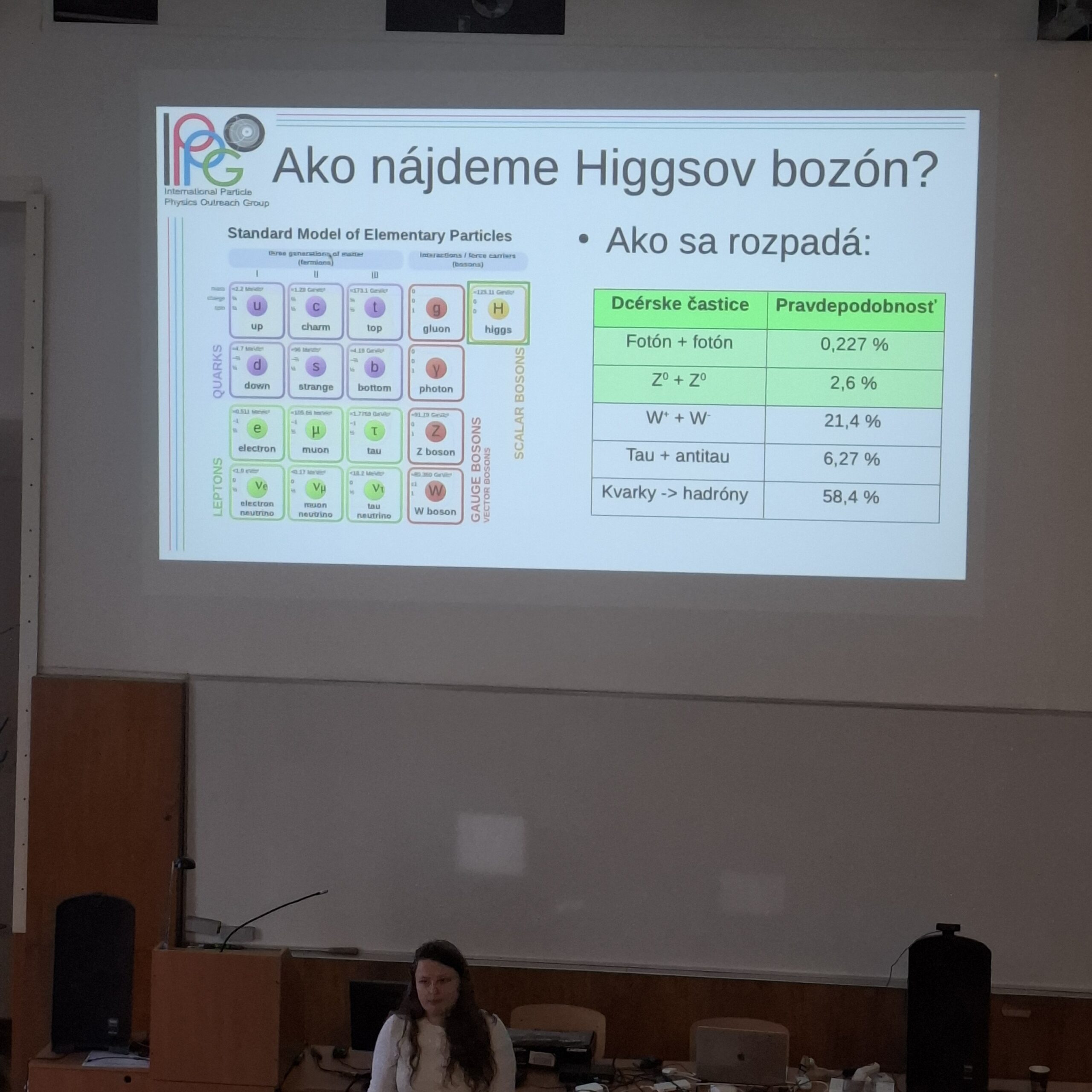 Študenti na dopoludňajších prednáškach získali základné vedomosti o časticiach ako sú elektróny, mióny, fotóny, Z bozóny a Higgsov bozón. Dozvedeli sa, ako častice urýchľujeme na urýchľovačoch, zrážame ich a zachytávame v detektoroch. Popoludní si študenti vyskúšali prácu časticových fyzikov pri analýze dát z najväčšieho urýchľovača na svete – LHC (Large Hadron Collider) v CERN.